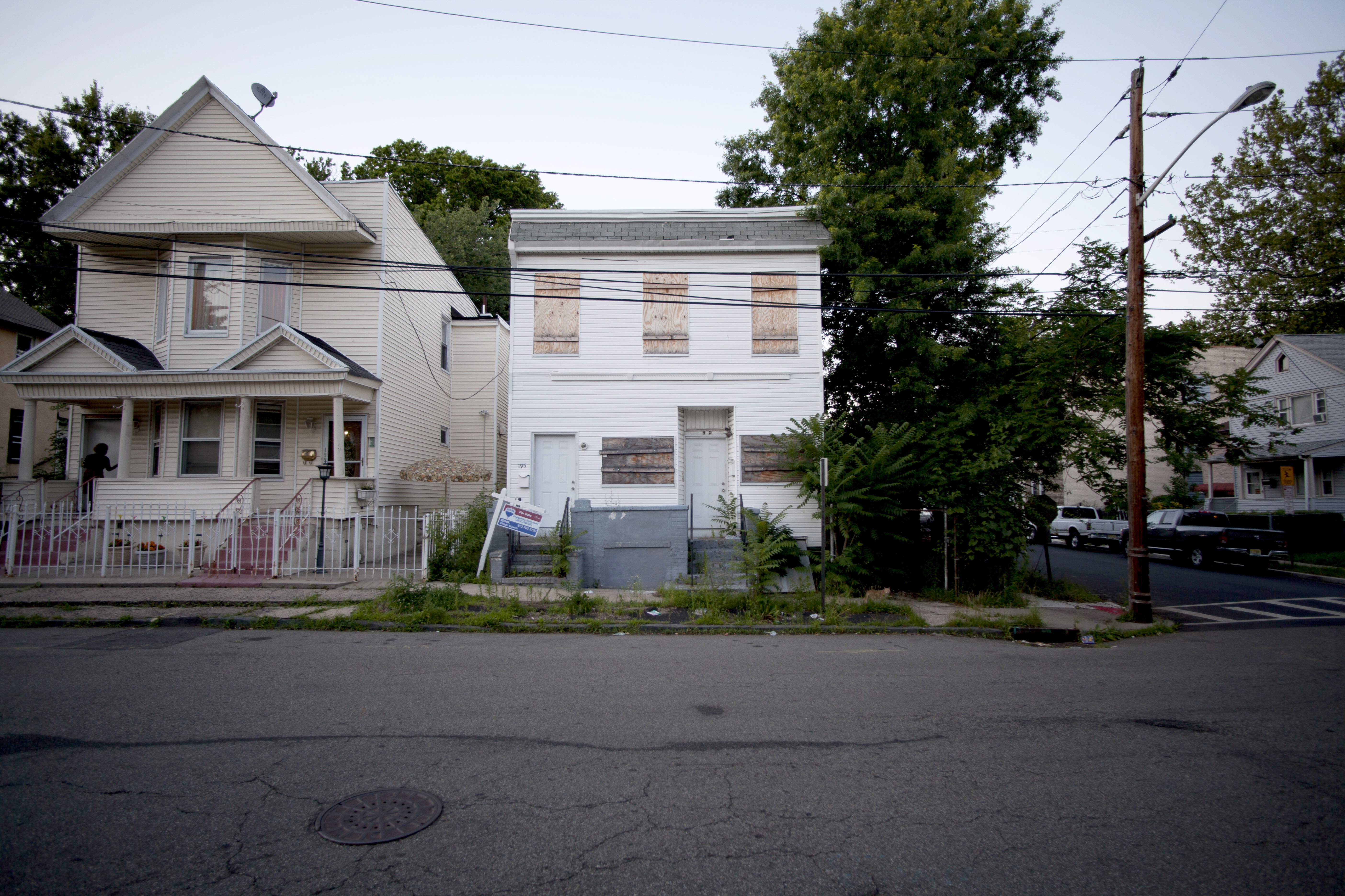 Street view of residences in Orange, New Jersey (by MOS Architects and team, assigned to The Oranges). Photograph courtesy of MOS Architects.